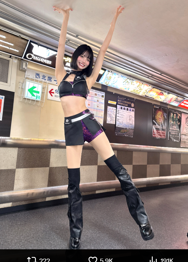 後楽園ホールの通路の天井をタッチする米倉(@yone__miyu630より)
