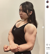 小顔マッチョな“腕相撲”女王、盛り上がる二の腕に驚き「減量明けるとすぐ戻る」