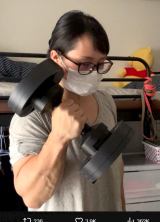 - メガネ姿の竹中はダンベルでトレーニング(@ayane_takenaka)