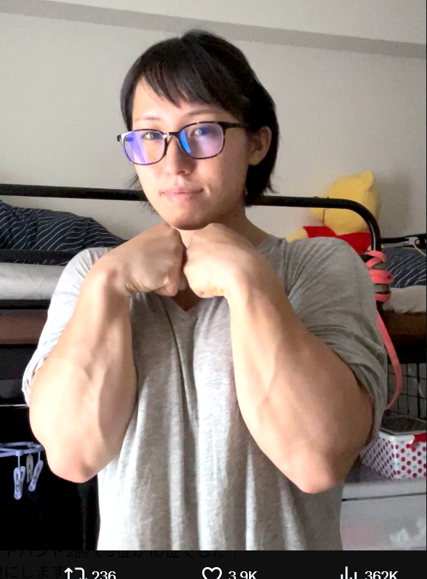 竹中がメガネ姿で腕マッスル!(@ayane_takenaka)