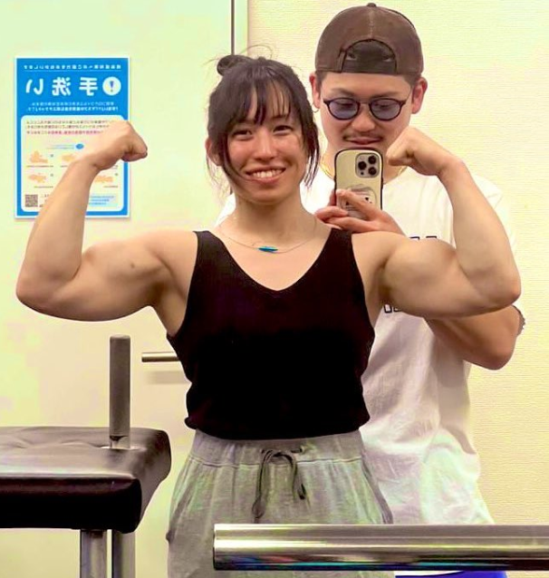 マッスルポーズを作る竹中(@ayane_takenaka)