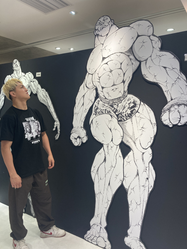 大きなパネルを見上げる鈴木