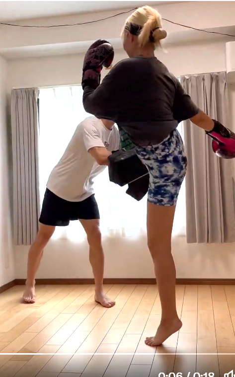 揺れる太ももでミット蹴りを見せる霜月めあ(@melomea030)