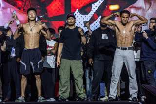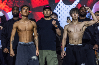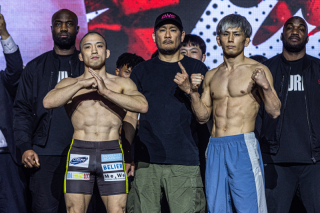 また、セミファイナルのフライ級MMAタイトルマッチで防衛戦を迎える若松佑弥は134ポンド(1.0116)でパスし、対するアバズベク・ホルミルザエフも133.8ポンド(1.0027)でクリア。他にもアトム級ムエタイ王座の防衛戦に臨む吉成名高、バンタム級キックボクシング王座に挑戦する与座優貴らが、計量をパスした。