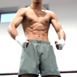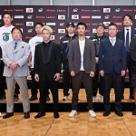 決戦2日前の会見に登壇した井上(左)と中谷(右)