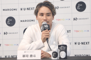 [KNOCK OUT-REDスーパーフェザー級/3分3R・延長1R]で元ルンピニースタジアム・スーパーフェザー級王者ゲーオガンワーン・ソー.アムヌワイデッー(タイ)と対戦する、元K-1フェザー級王者の軍司泰斗(TEAM SUERTE)が会見に出席した。