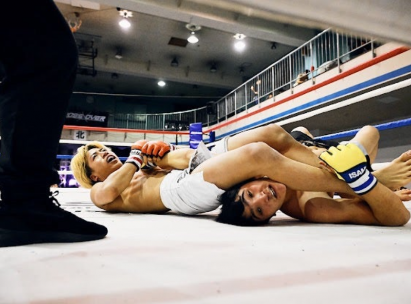 ドゥナシェブ容疑者(右)は、格闘技イベント『KROSSOVER』で2回試合に出場。写真は2023年12月17日の一本負け(『KROSSOVER』公式ホームページより)