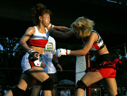 玉田育子(左)が判定勝利