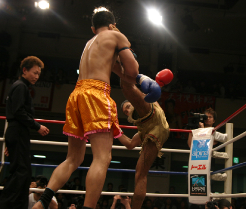 ハイキックを出す菊池。蹴り、パンチで圧倒した
