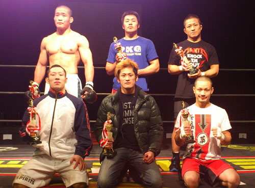 各階級の優勝者たち(前列左から)馬場勇気、石田勝也、小島壮大(後列左から)片平吉幸、鬼島有羽、別府克洋