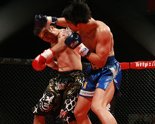 ザノリニ(左)が回転の速いパンチでスファンを下す