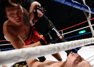 カウンターの左フックでKO勝ちした鷹亜希(左)