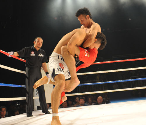 格闘技経験はないという吉井(右)が勝利をつかんだ