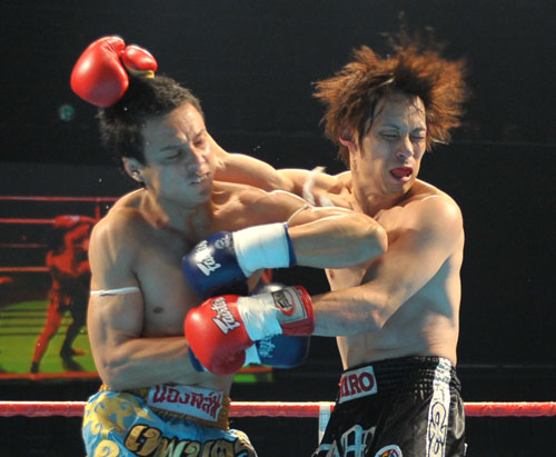 コンゲンチャイ(左)の強烈なヒジが炸裂!