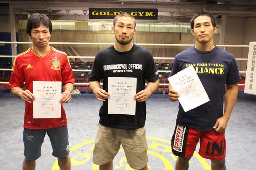 写真左より60kg未満級優勝の竹中、70kg未満級優勝のギロチン、80kg未満級優勝の鈴木