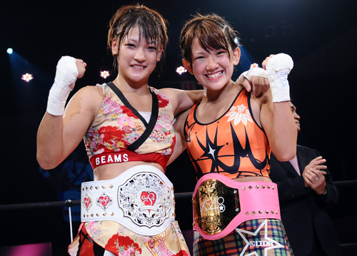 Girls S-cup 2012トーナメント優勝のRENA(左)とJKS48トーナメント優勝のMIO(右)