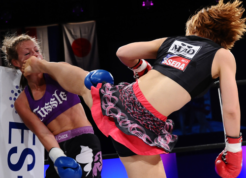 総合格闘家同士の試合はハム・ソヒ(右)が打撃でリサ(左)を圧倒した