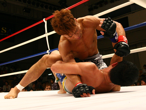 上のポジションを奪い、パンチを叩き込む宮田