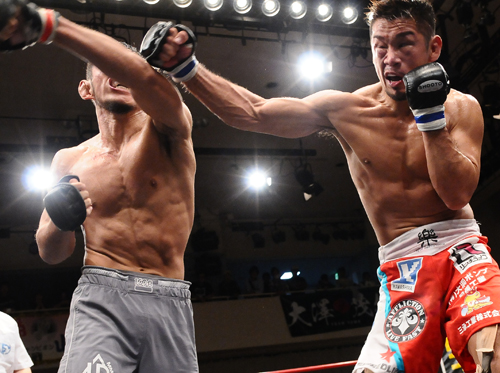 場内大興奮! 大激闘を繰り広げた宇野薫(左)と石渡伸太郎