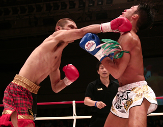 パンチを打ち込む石川