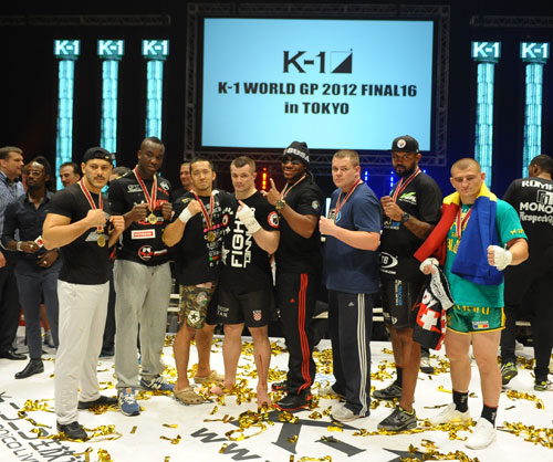 12・26ニューヨークで行われる決勝トーナメント進出を果たした8名。(左から)サメドフ、ロント、上原、ミルコ、ミラー、エドワース、カラケス、モロサヌ