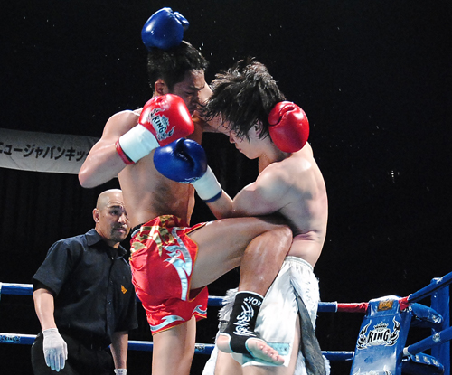 現役ランカーのシティサク(左)がヒザ蹴りで2度のダウンを奪った