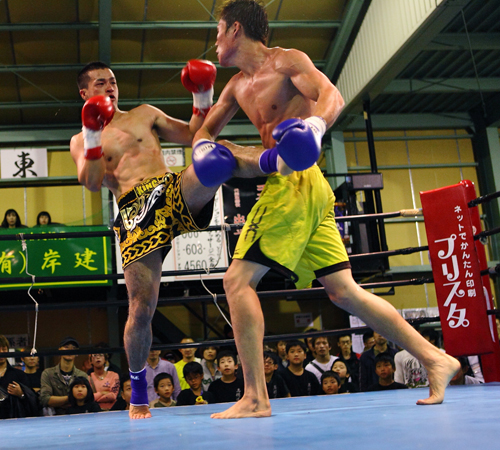 K-Jee(右)がメリケンに逆転KO勝ちした