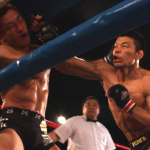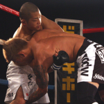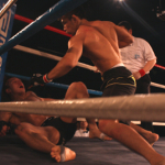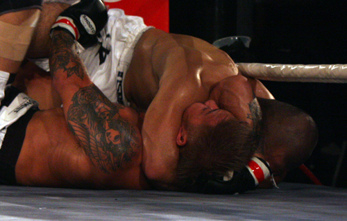 大澤茂樹(下)に肩固めを極める中村好史(上)