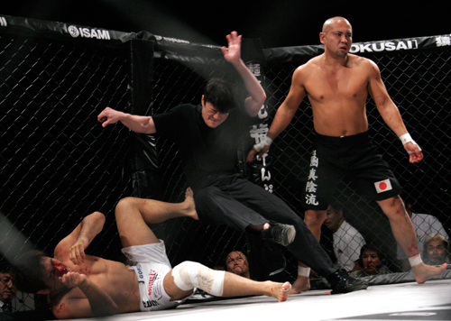 素手による顔面パンチありの過激ルールで桜木(右)が壮絶KO勝ち