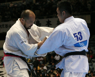 ベテラン・鈴木国博(左)は準々決勝で森健太(右)に敗れる