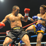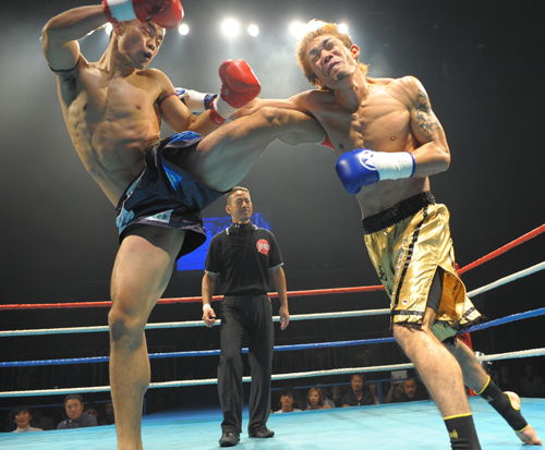 トリッキーな動きの網本(右)に日菜太(左)の左ミドルが炸裂