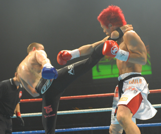 オブスタイルがハイキックをヒットさせる