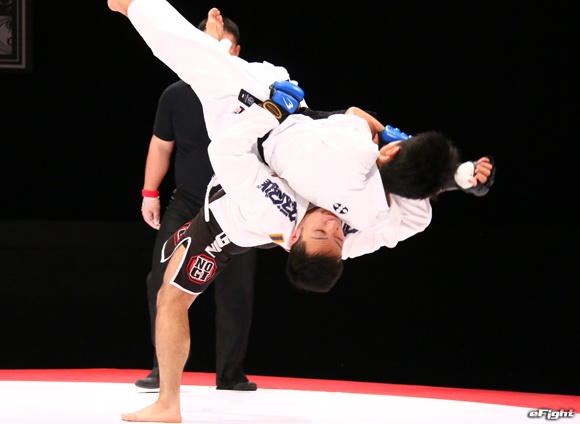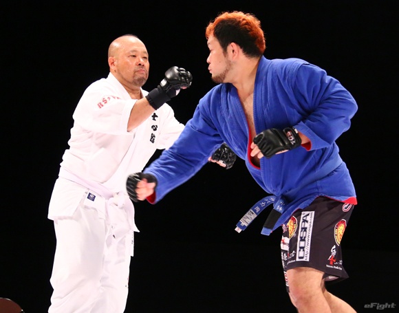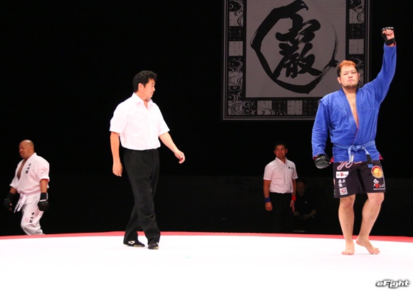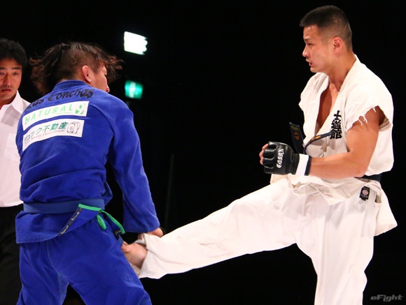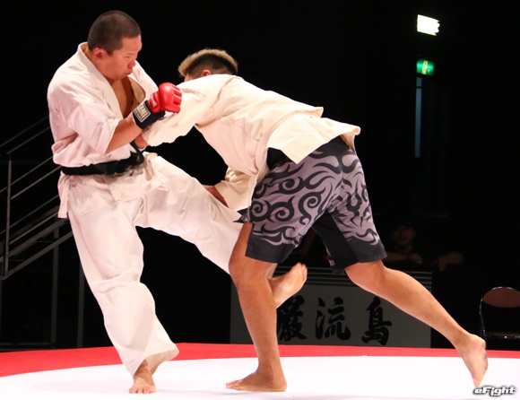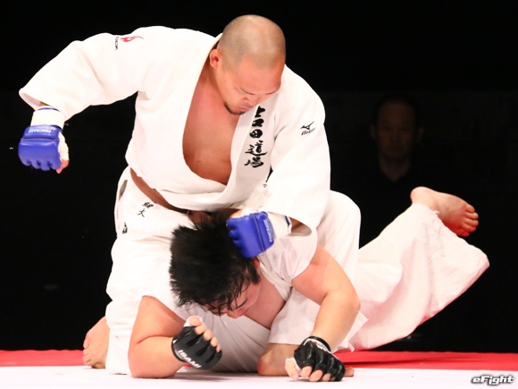 ▲3度場外への押し出しで一本勝ちした吉川(右)