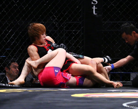 テイクダウンされた向だが、アームロックをかけながらひっくり返す