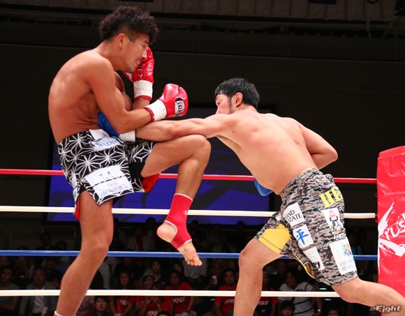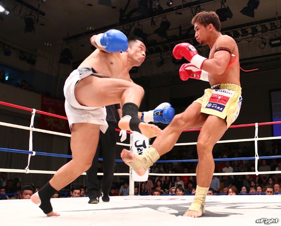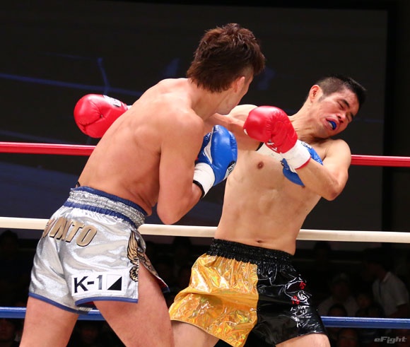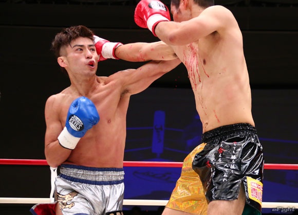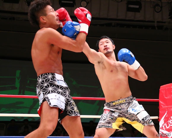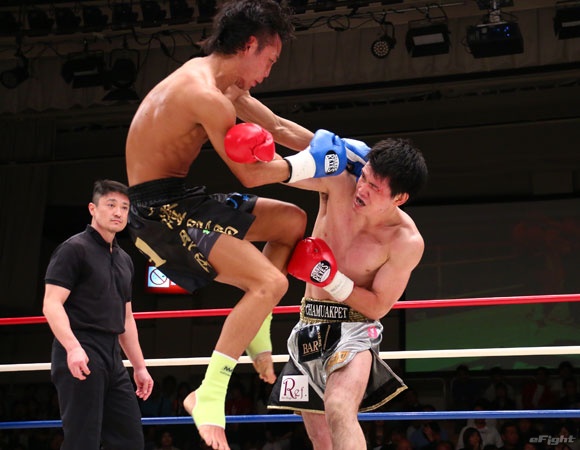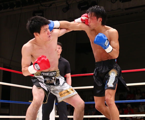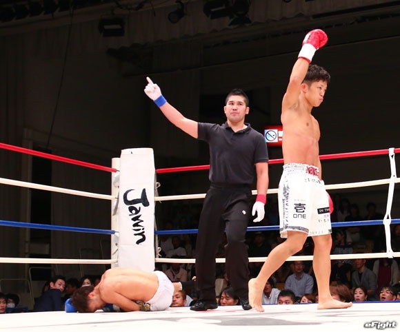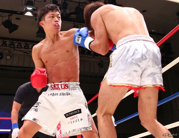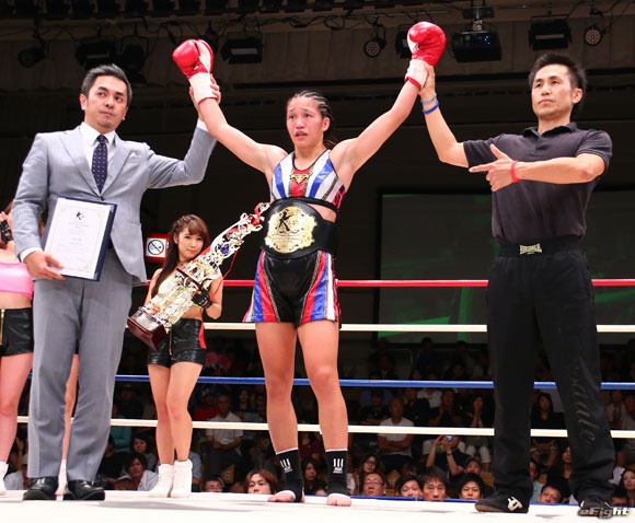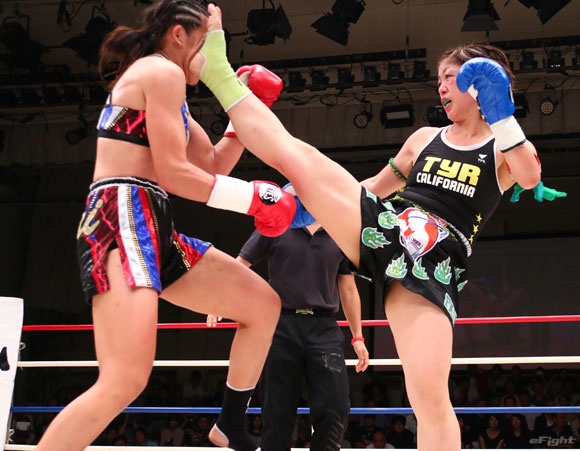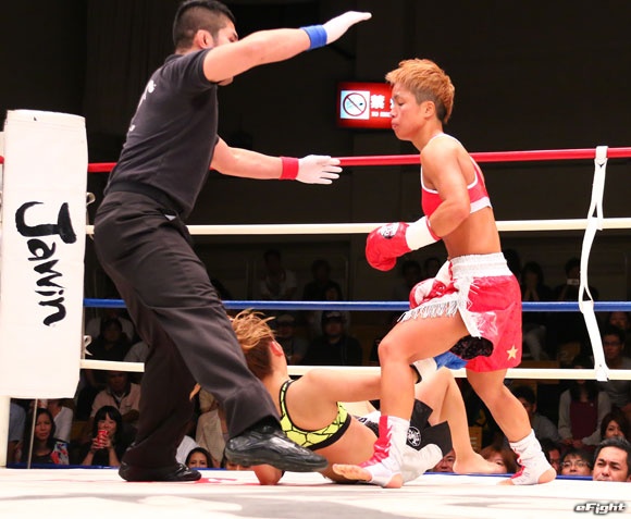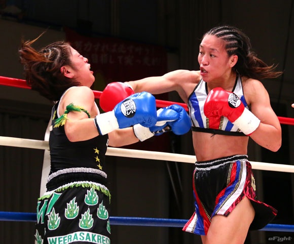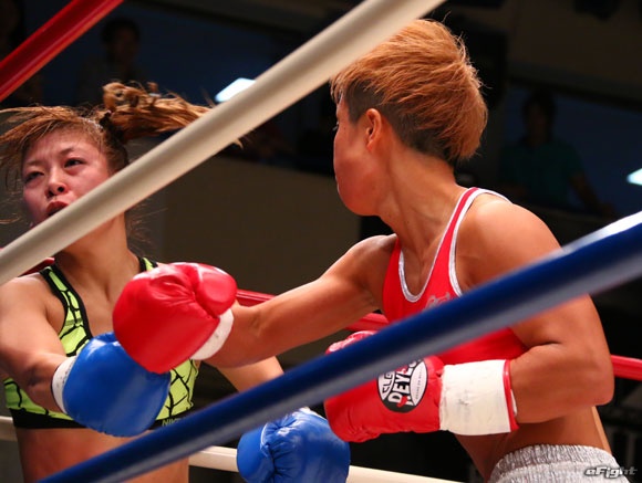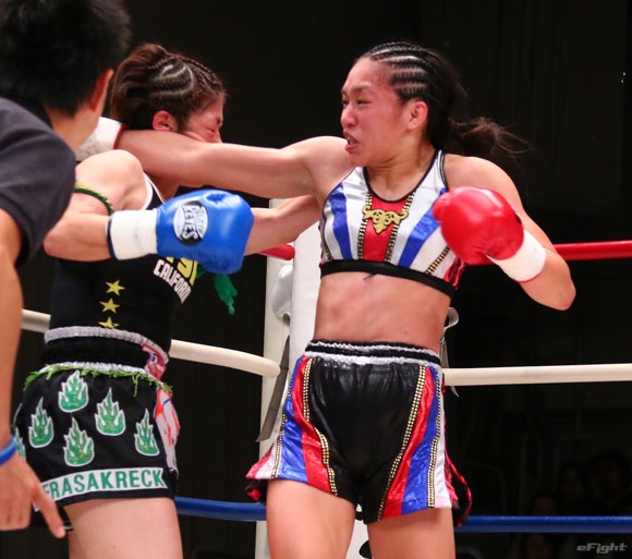 朱里(右)の右ストレートが何度もヒット。合計4度のダウンを奪って圧勝した