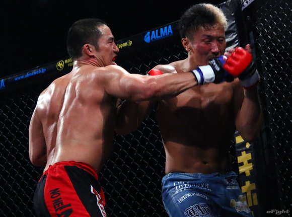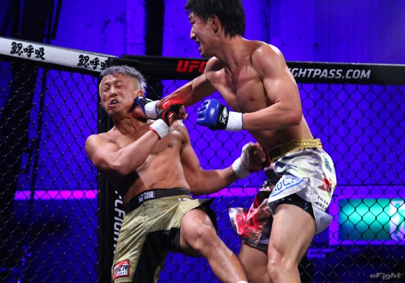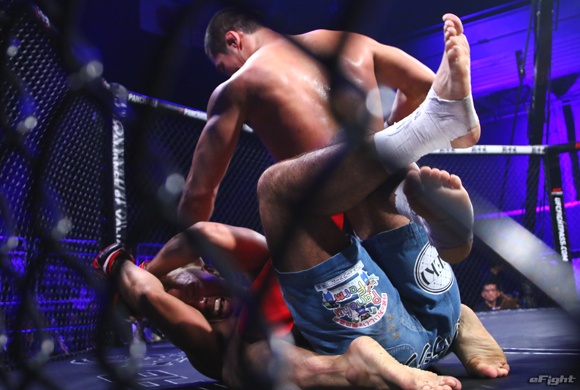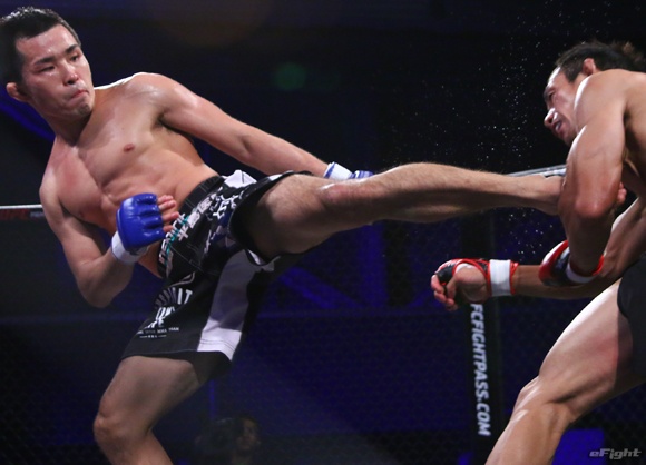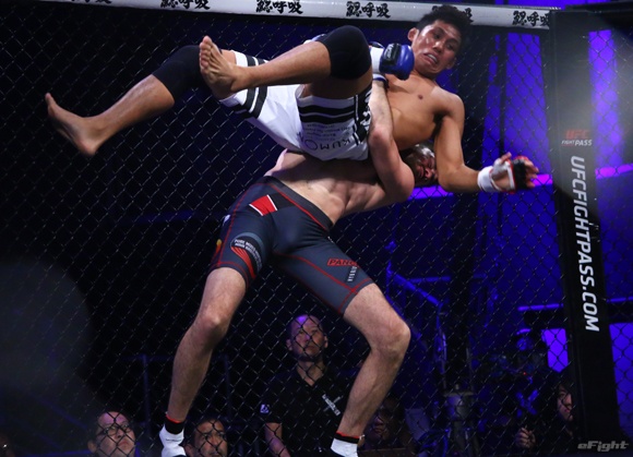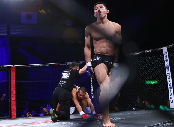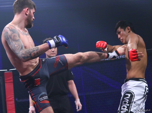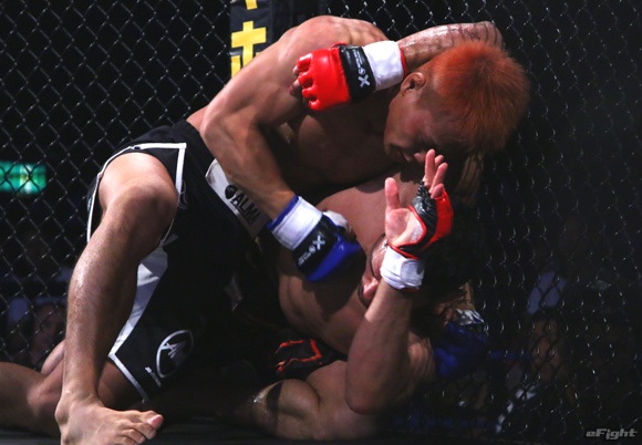 三角絞めで一本勝ちしたアンディ・メイン(下)がパンクラス新王者に