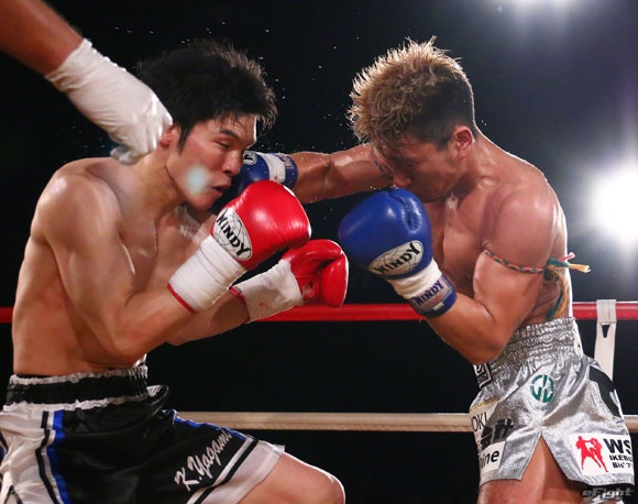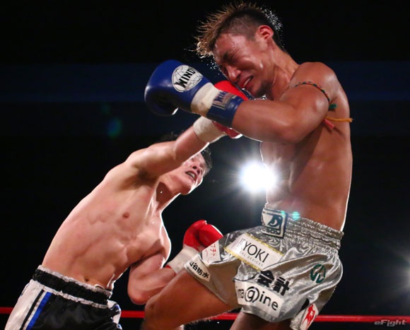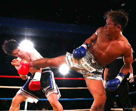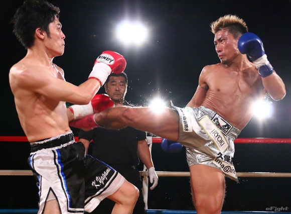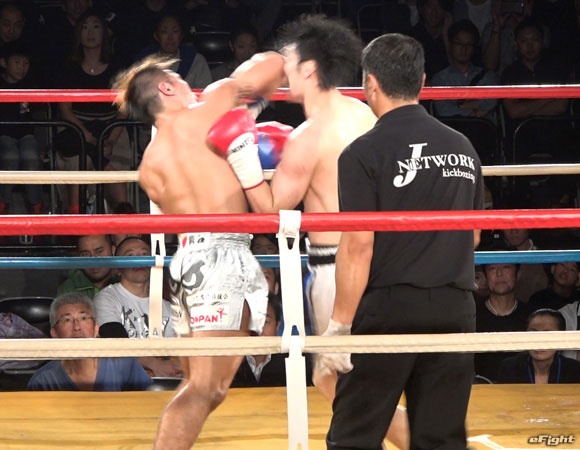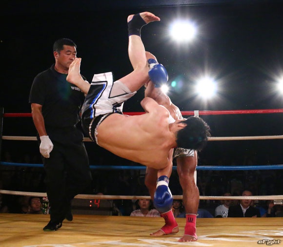一戸が蹴り足をキャッチし、八神を豪快にマットへ叩きつける