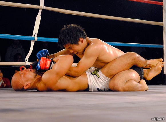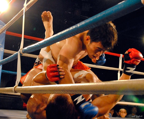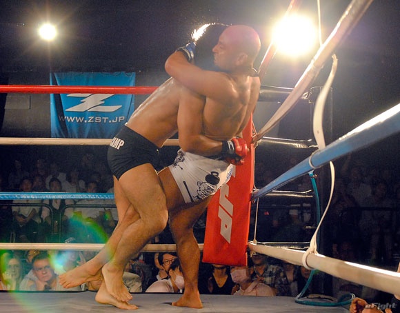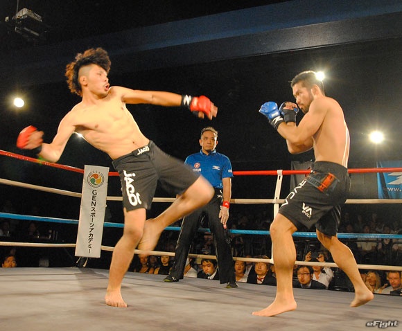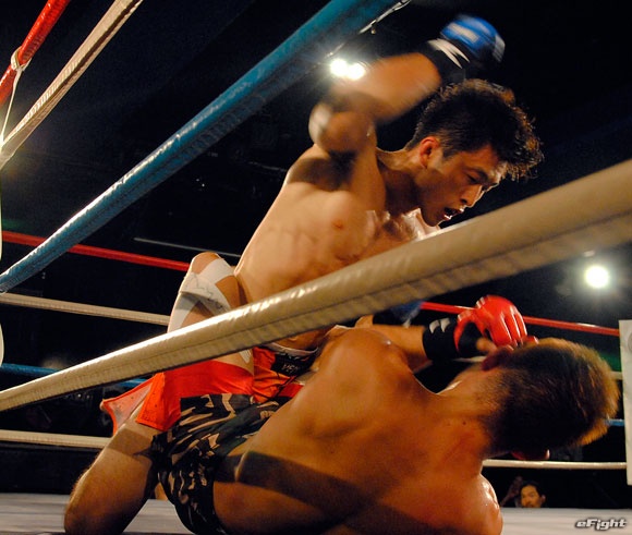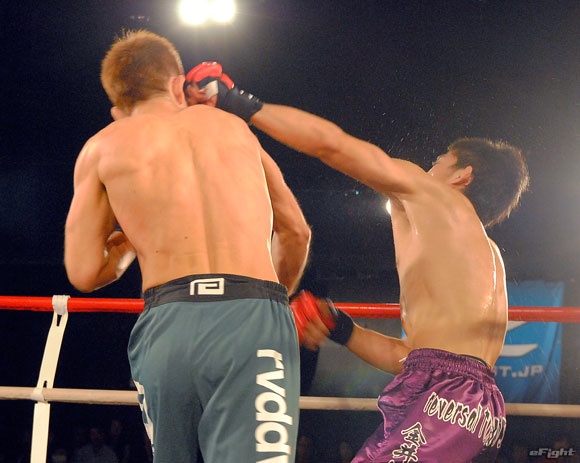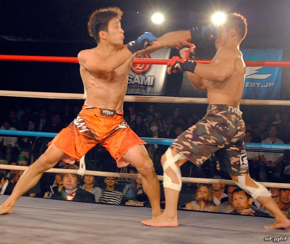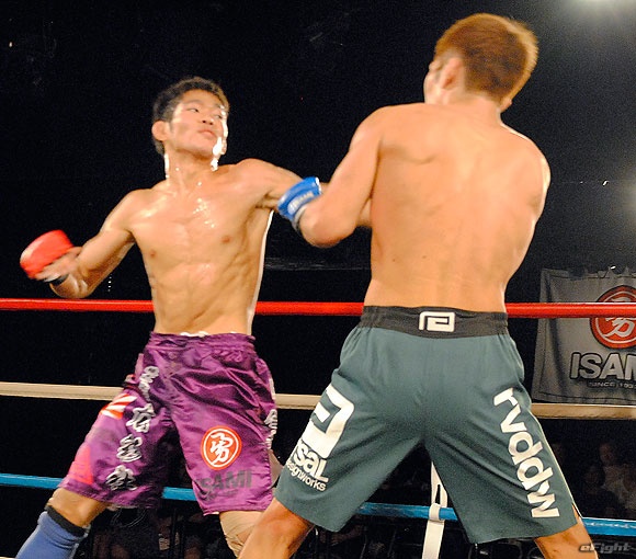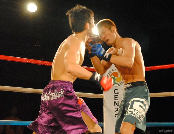 金井塚(左)はフェイントを交えてパンチを細かく打ち分けていく