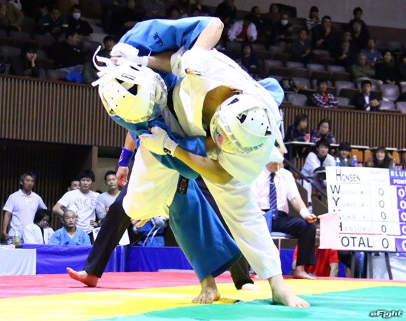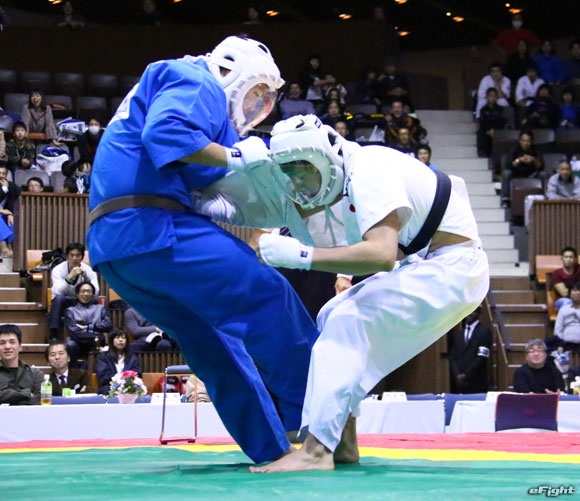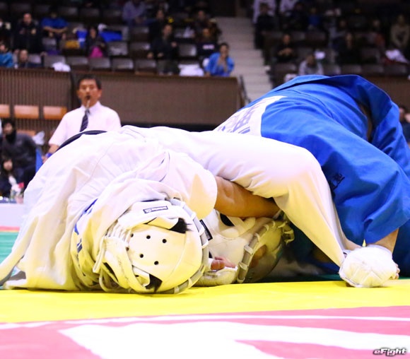 延長戦、清水は組んでのヒザ蹴りで効果を追加した