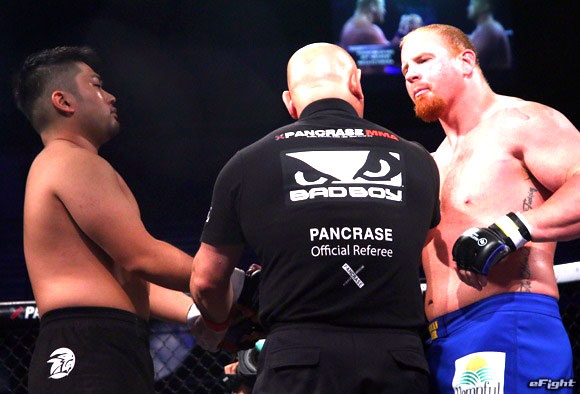 プリンドルの巨体に押し潰される中井