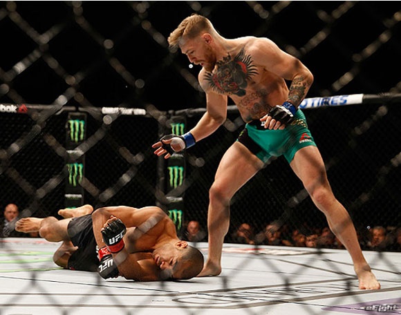 今年最大の一戦はマクレガー(右)が10年間無敗の絶対王者アルド(左)をわずか13秒でKOに葬った