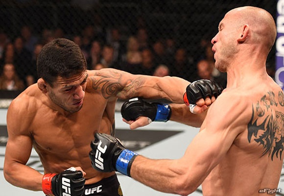 序盤から圧倒し、1Rわずか1分6秒で初防衛に成功したアンジョス(左)