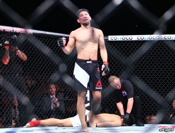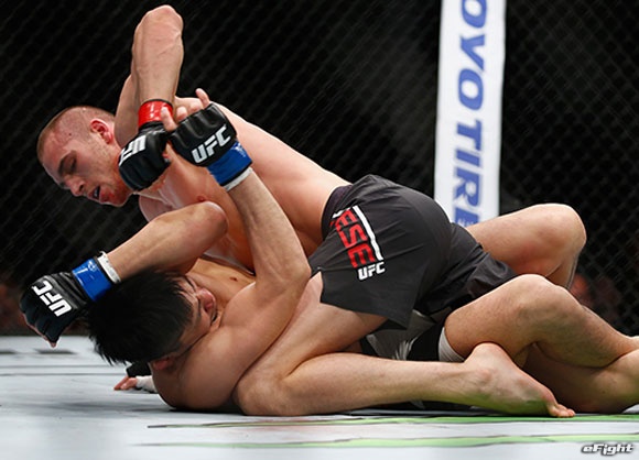 中村を抑え込みながら上からヒジとパンチを落とすブリーズ