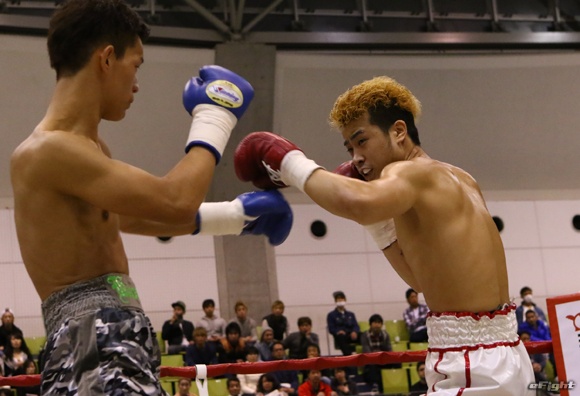 僅差の判定勝利で4連勝となった辰吉寿以輝(右)