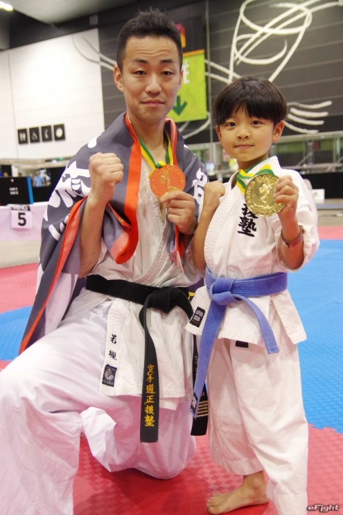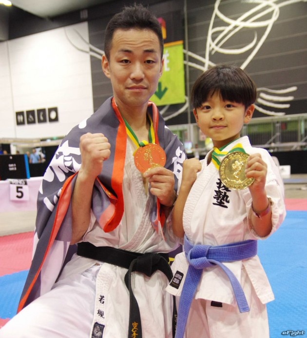 若槻(左)と若槻の道場(正援塾)に通う上原さすけ君(右)もトーナメントを制し師弟で金メダルを獲得した