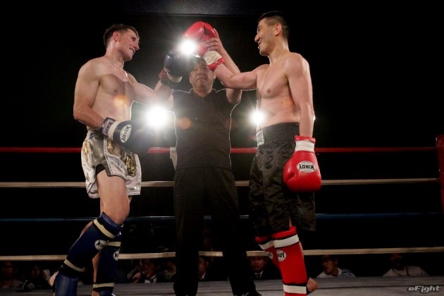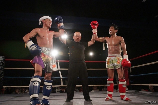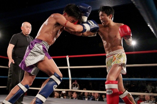 川辺(右)の小さいモーションからの右ストレートが新興の顔面にヒット