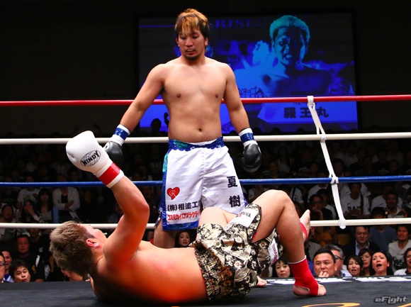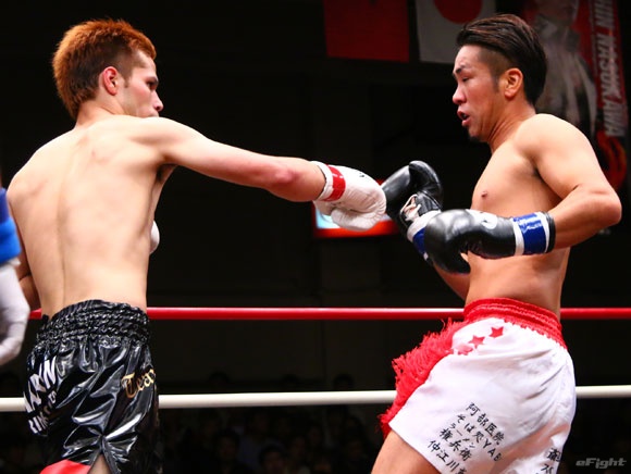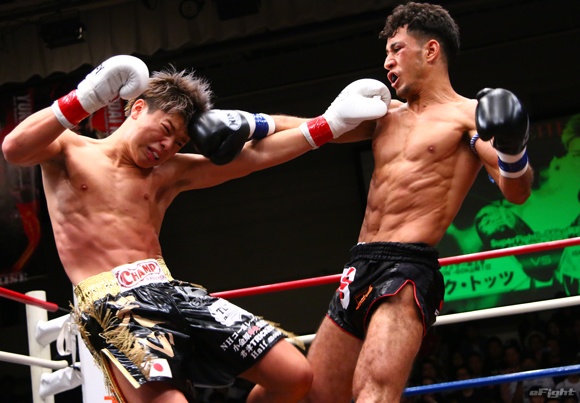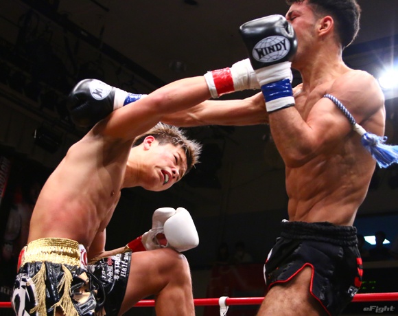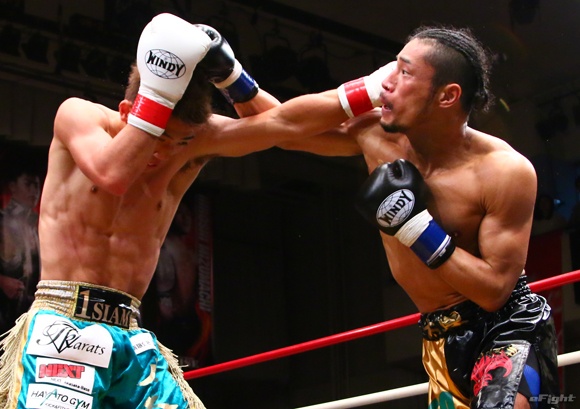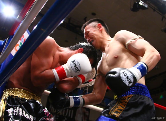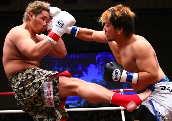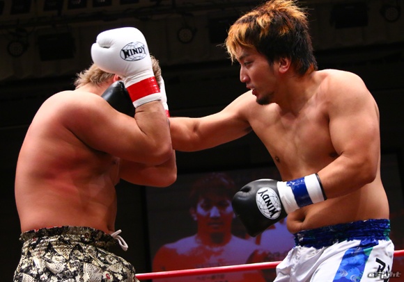 村田諒太似の橋本(右)がテクニックで圧倒。しかし番長(左)の倒しに行く姿勢も大うけ