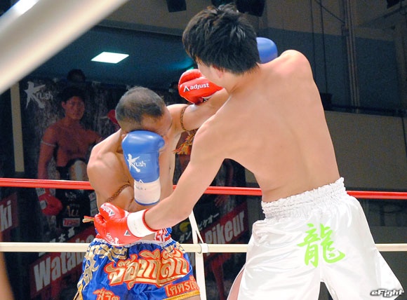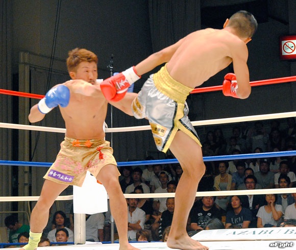 武居(右)が上羽(左)を圧倒して初回KO、初代王座に就いた