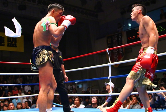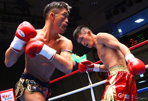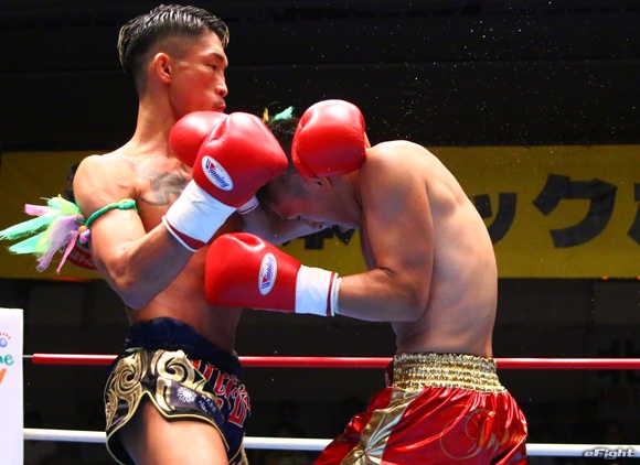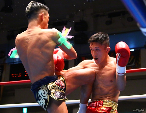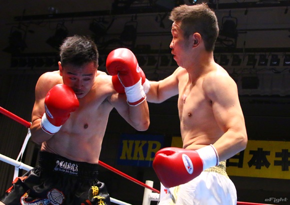 大和(右)をヒジで追い込む翔(左)