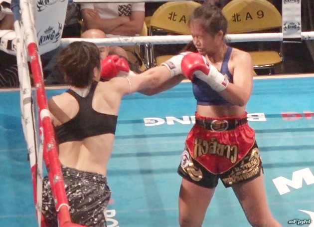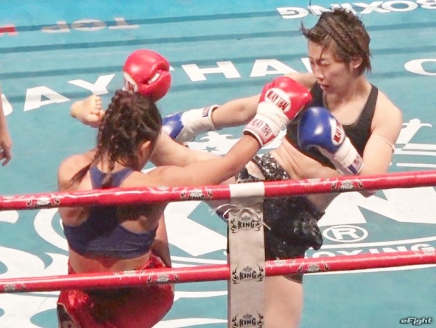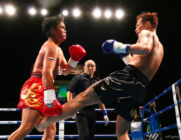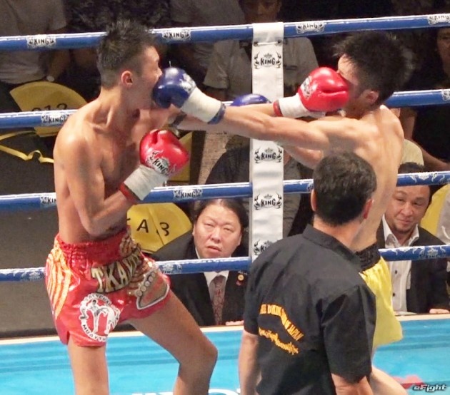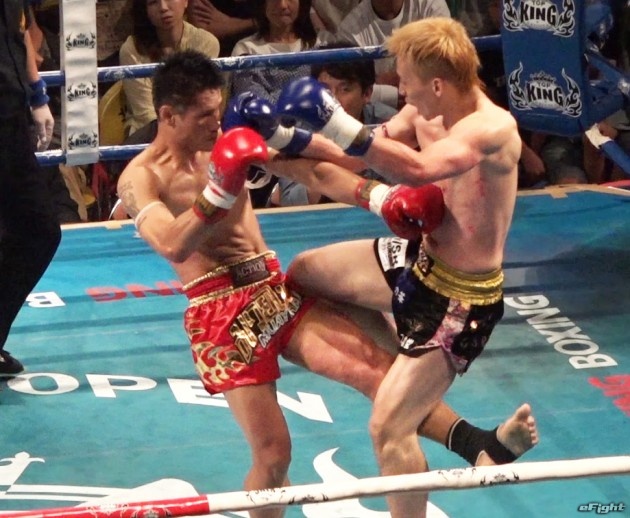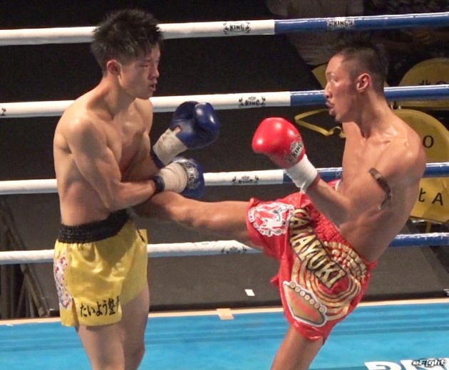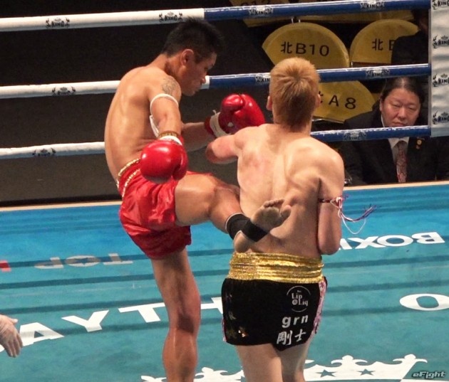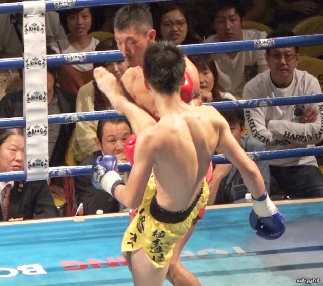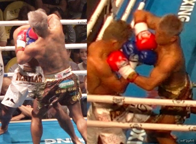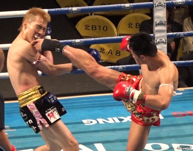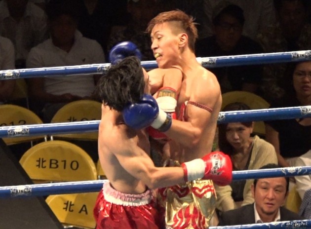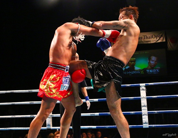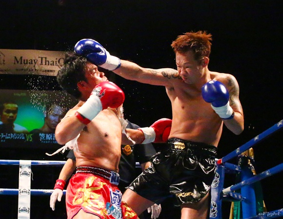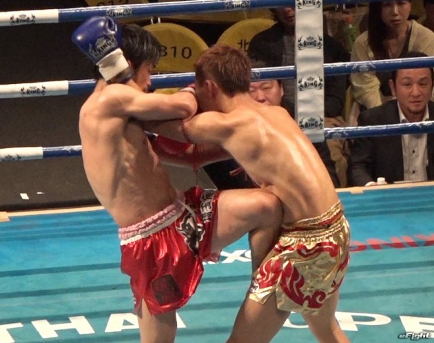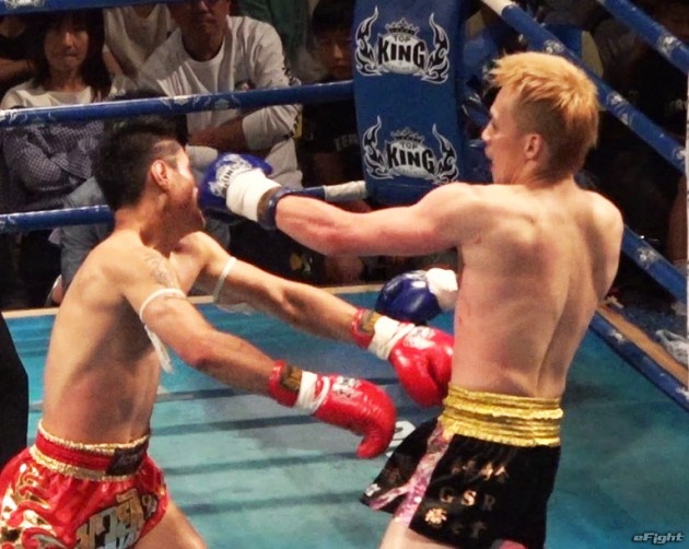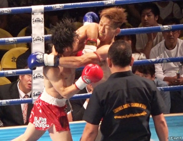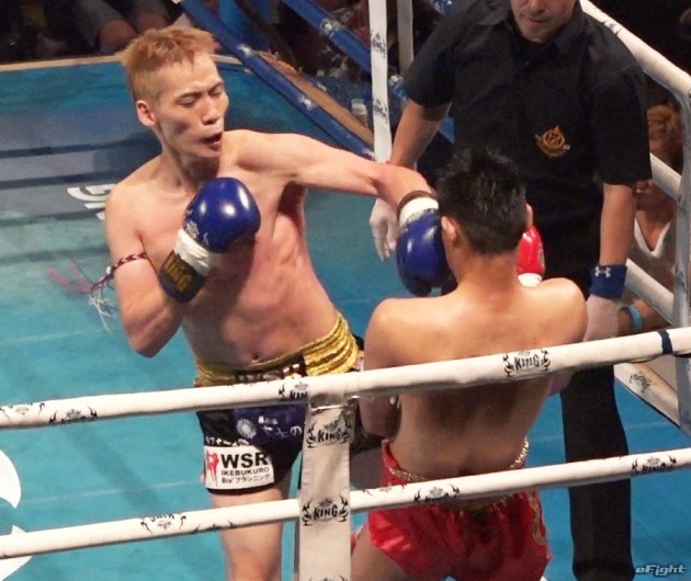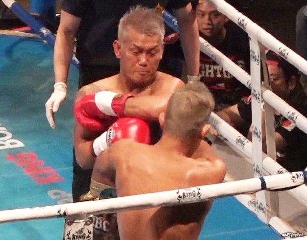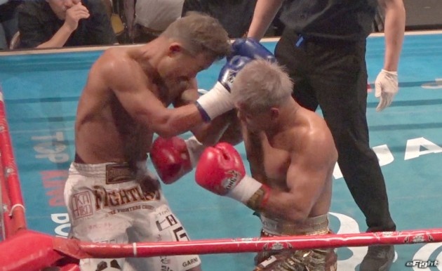 強烈なヒジ打ちを見舞うTOMOYUKI